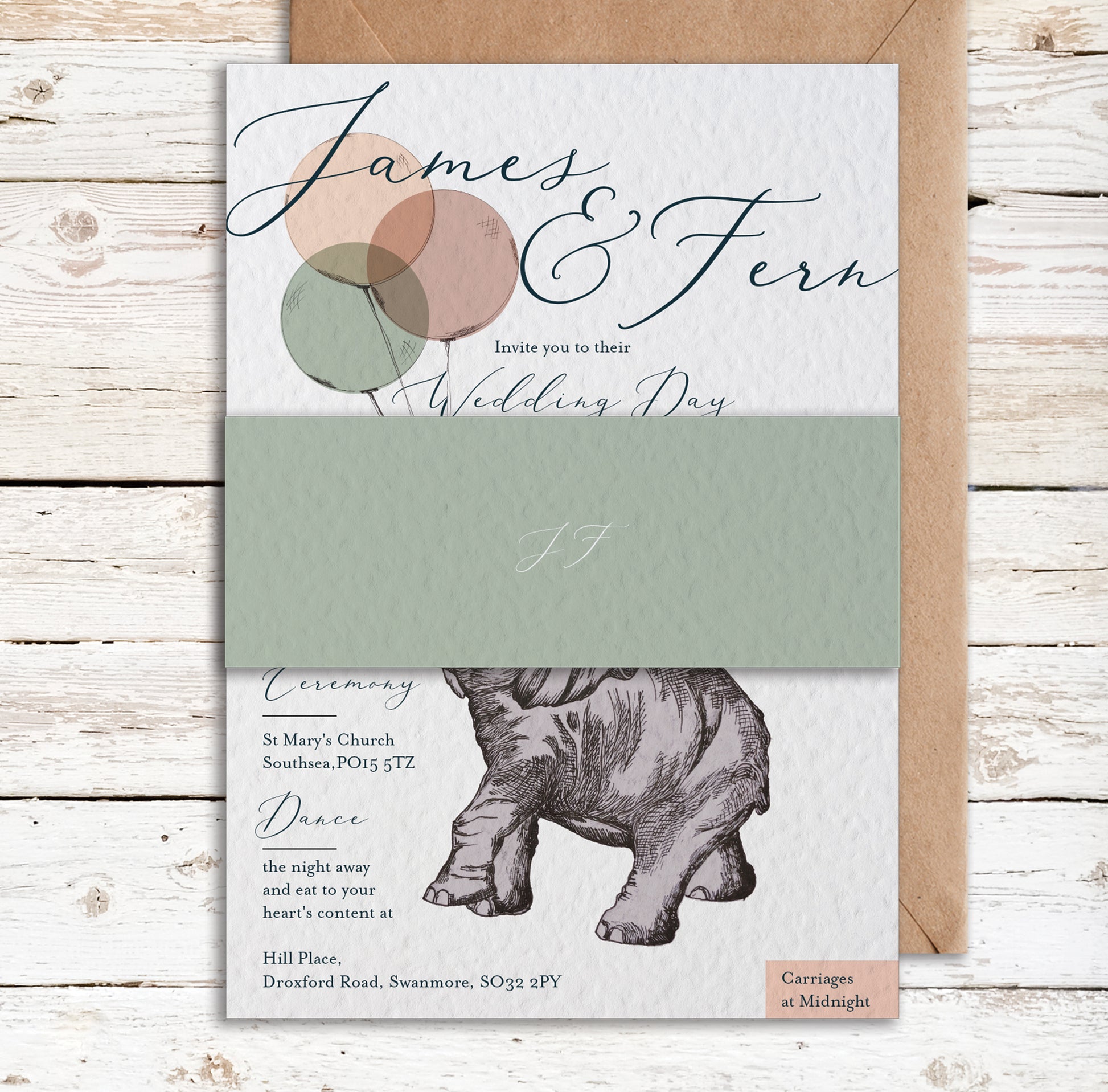 Elephant and Balloon Vintage Circus Themed Customised Wedding Invitation Set