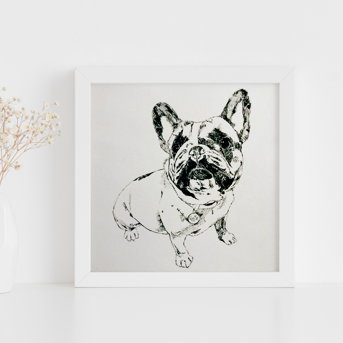 These pet portraits make an ideal gift for loved ones. This composition focuses on the gorgeous face to capture the personality and charm of your beloved furry friend. The original artwork is drawn by hand in black and white for this option, on to artist quality cartridge paper and wrapped beautifully in a protective sleeve. The frame is not included with this commissioned piece of art but guidance on size is provided below.