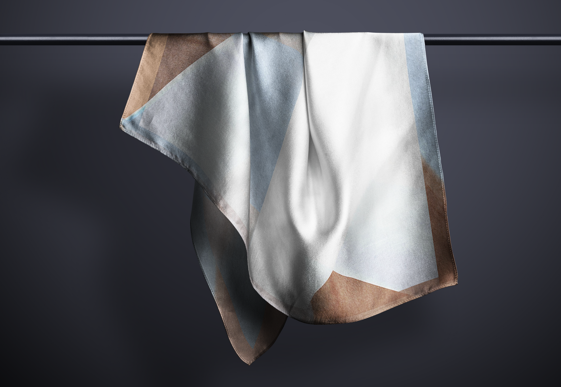 Topgreen is a sustainable fabric made in the UK. Similar to a georgette chiffon in weight and texture, the fabric is transparent so that you can see the print on either side of the scarf so its design is not lost when tied or draped.