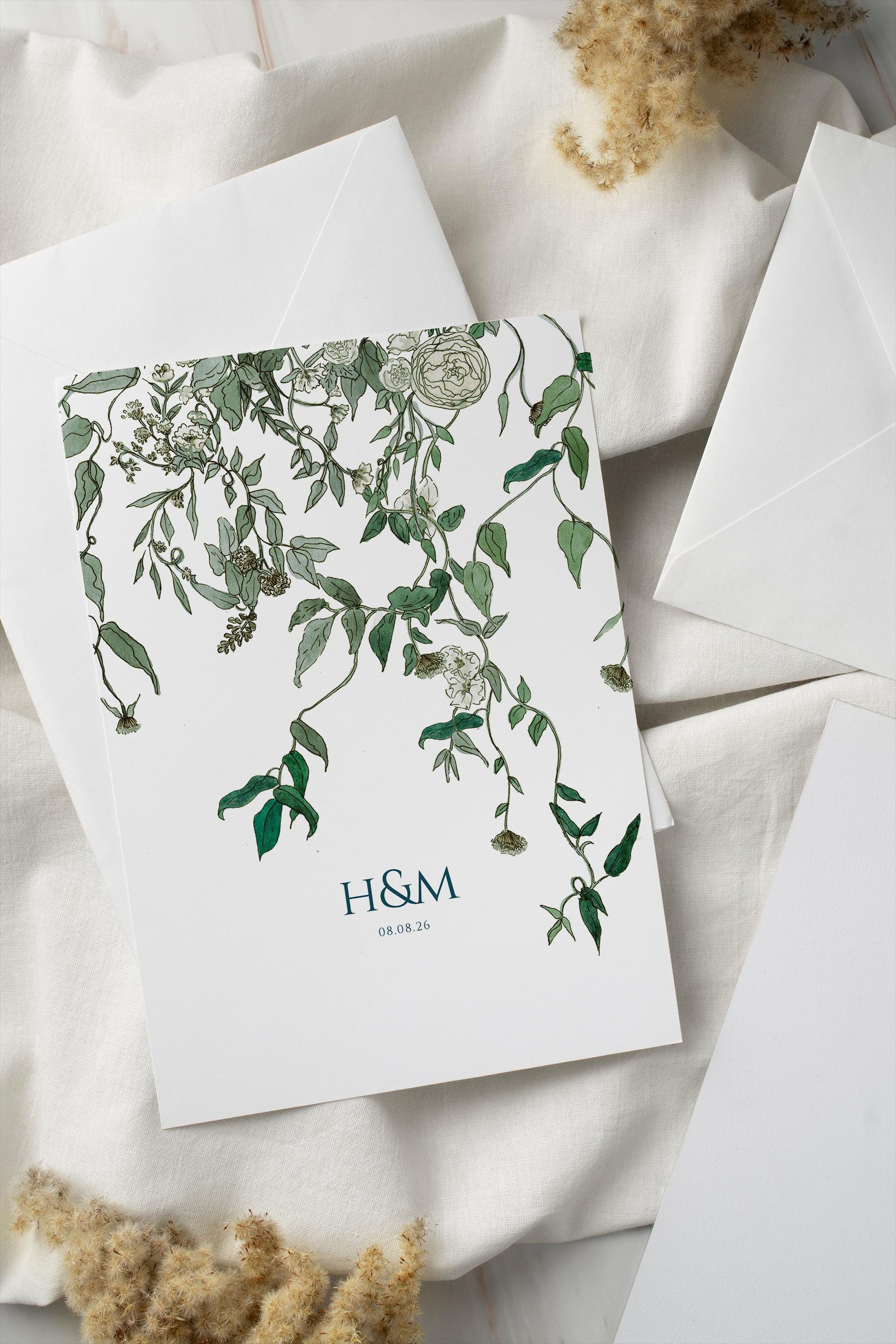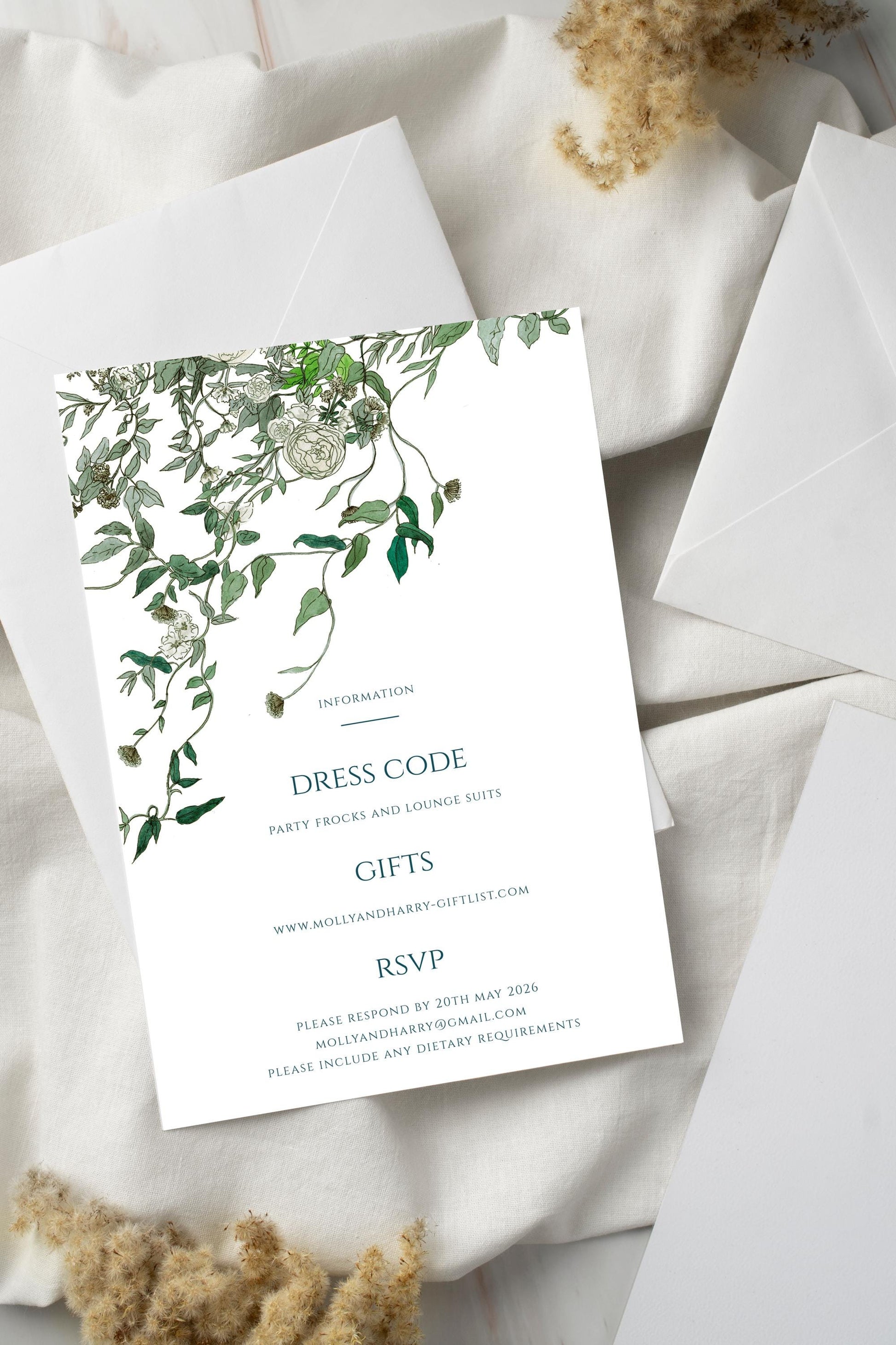 Trailing Vines Wedding Invitation TEMPLATE, Optional Customisation & Print, Hand Drawn Wedding Invite & Information, Printable EDITABLE Download